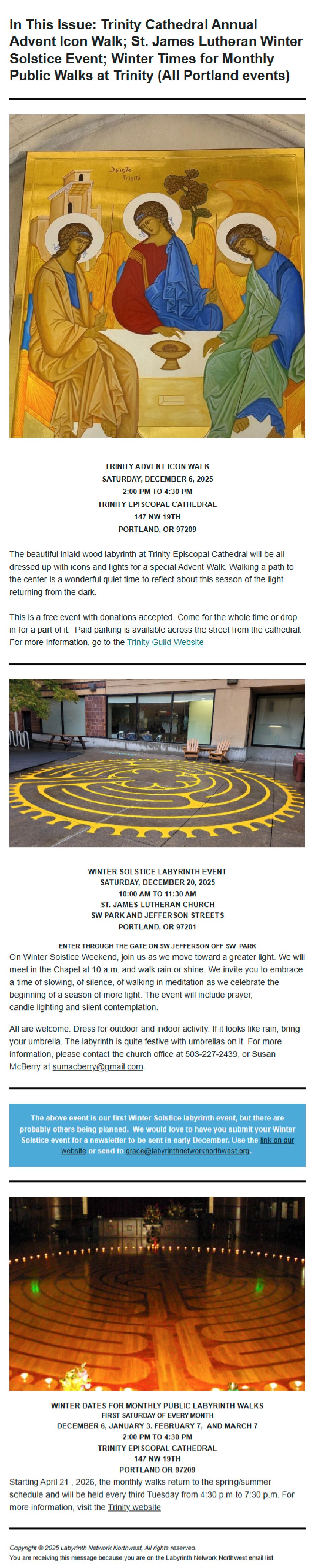 November 17, 2025 Newsletter Please Note: Links in this Newsletter’s PDF are not active. To get a link to any Event mentioned in this newsletter, please return to the Events Page of the website Portland events PreviousSeptember 24, 2025